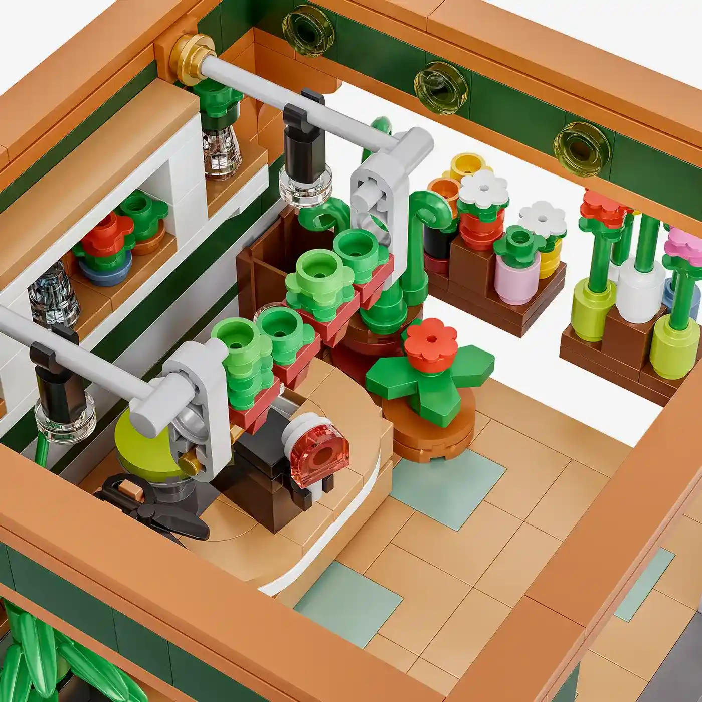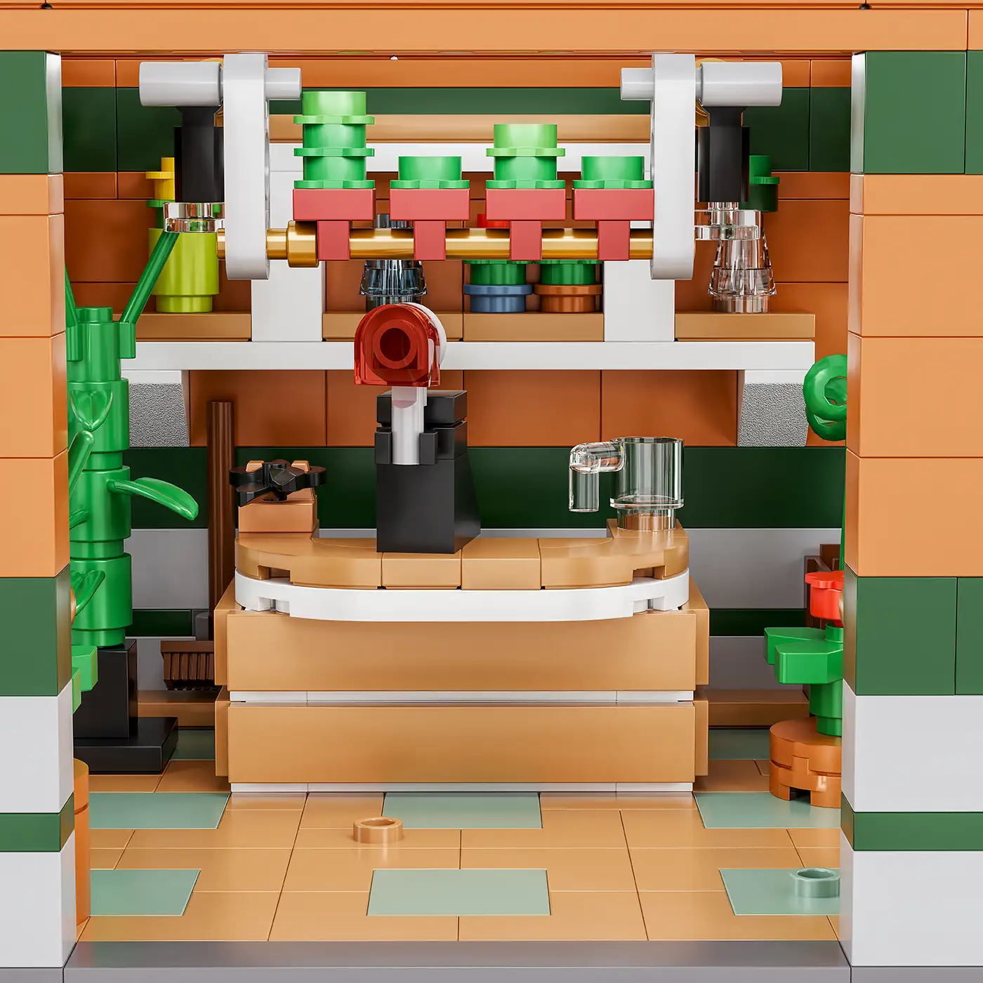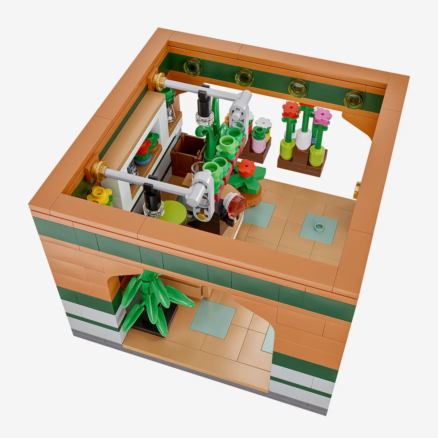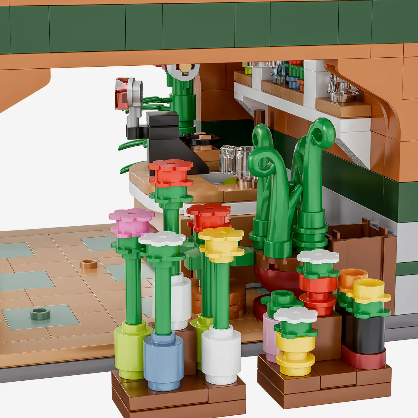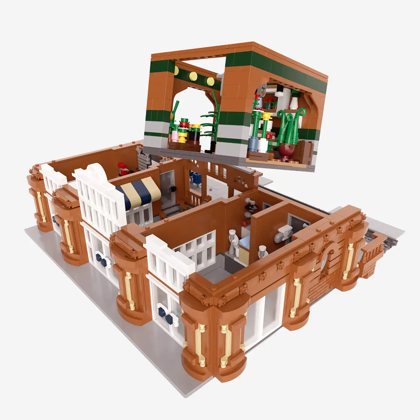 This detailed set depicts a charming flower shop with lovingly designed plants, flowerpots, and a decorative shop window front. The modular design allows for easy and flexible integration into existing Studgart sets such as the main hall, intermediate buildings, or final buildings. Ideal for anyone looking to add more atmosphere to their station scene.